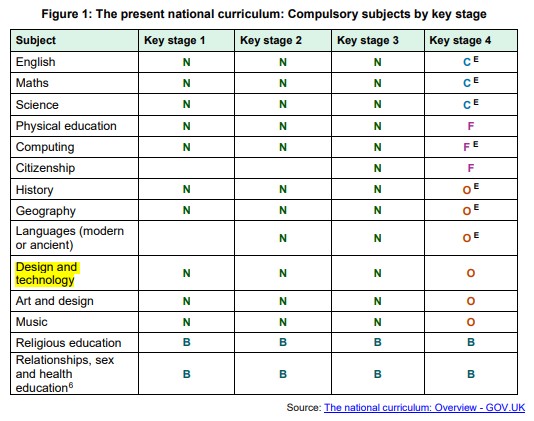 - That D&T (and Food and Nutrition) is compulsory at KS1-3 and optional at KS4.